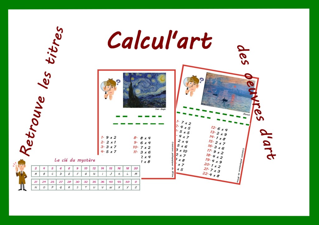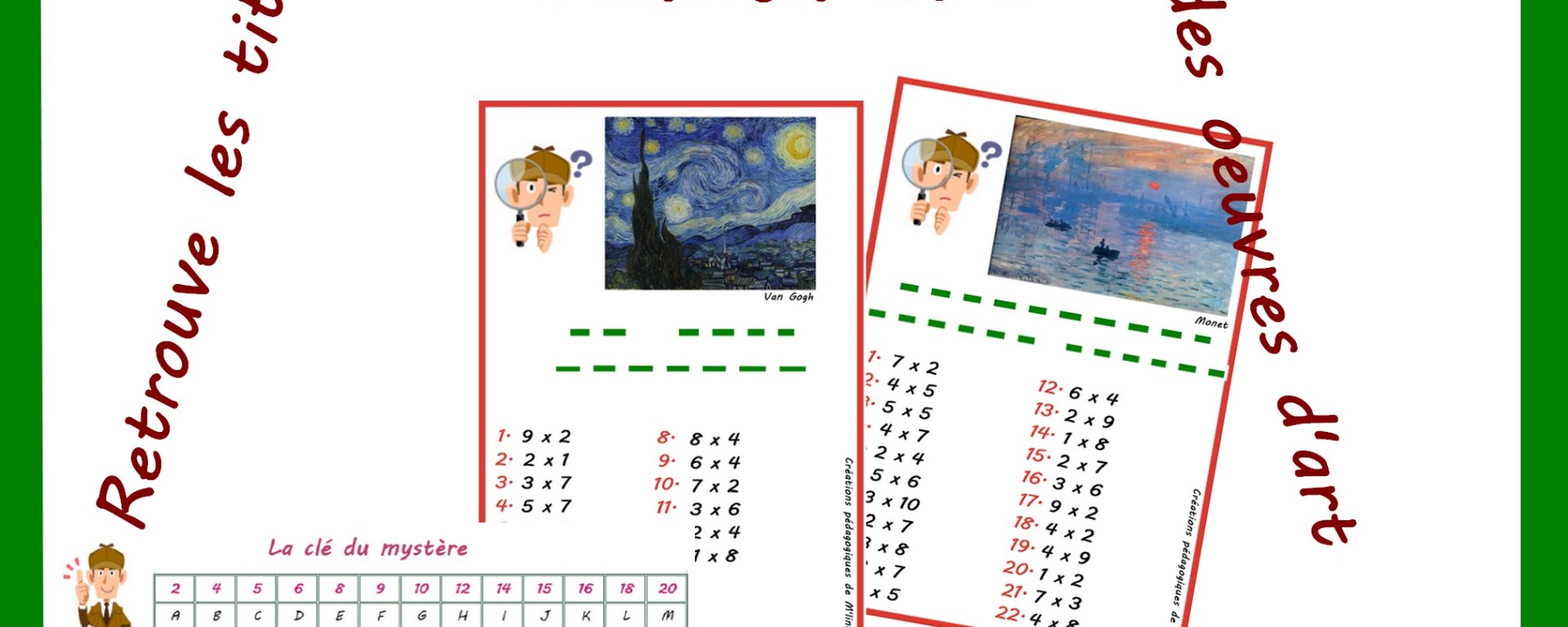 Grâce à la clé du mystère, les élèves vont pouvoir associer une lettre de l’alphabet à chaque résultat de multiplication ce qui va leur permettre de découvrir le titre des œuvres d’art.