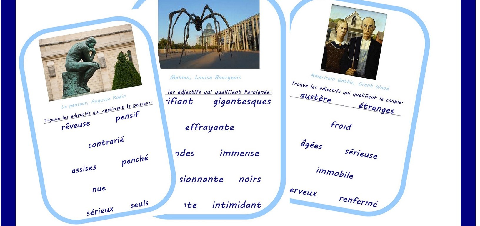 Ces petites cartes permettent de travailler la notion d’accord dans le groupe nominal. Il s’agit d’entourer les adjectifs qui peuvent s’accorder avec le GN proposé. Les élèves vont devoir être vigilants au genre et au nombre du nom noyau.