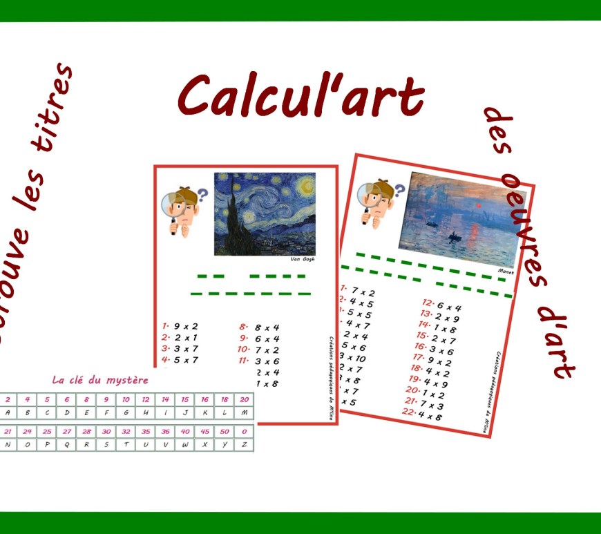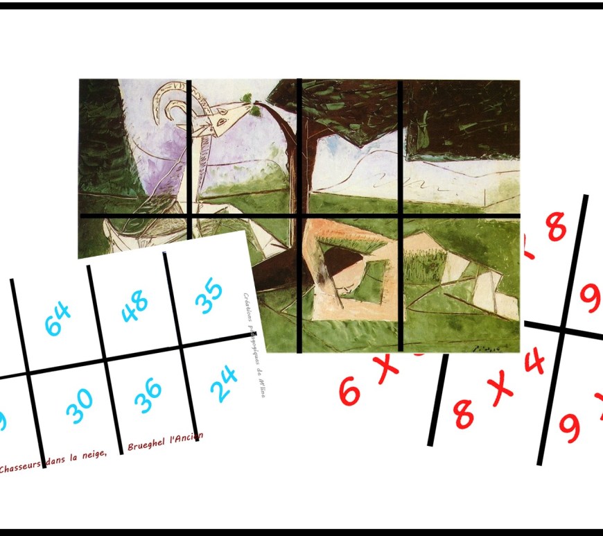 Ce fichier comprend un jeu de loto avec le stables de 2,3,4,5 et 10 et un loto avec les tables de 6,7,8 et 9. L’atelier se présente comme un loto classique, il faut imprimer en recto verso les œuvres d’art et les calculs. Les résultats des opérations servent de planches de loto sur lesquelles les élèves vont venir poser les morceaux d’œuvre pour reconstituer leur … Continuer de lire Lotos des multiplications